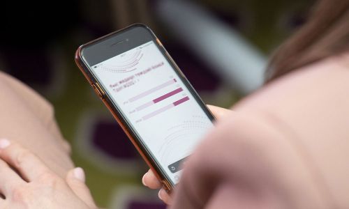 A question is displayed on a screen and each participant of the event can click on a link or scan a QR code to instantly vote using a personal mobile device without having to enter a login or password.